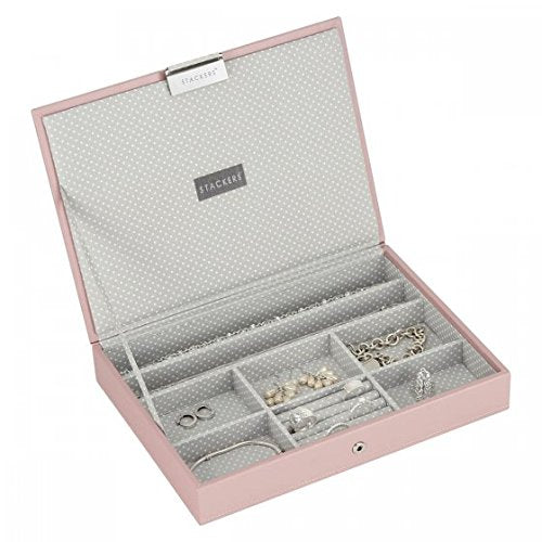 Soft Pink with Grey Spot Lining Classic Size top Stacker Jewellery box with lid Size 25 x 18 x 3.5cm